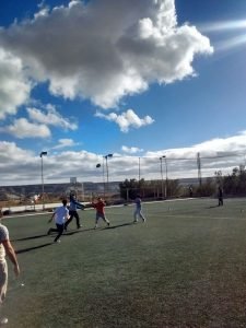 Llegó el profesor de educación física-Mauro Acuña-, entramos en calor corriendo 5 vueltas en la cancha de fútbol; después hicimos grupos de 3 y nos pusimos a pasar la pelota de rugby: también jugamos al pulpo que consiste en que un jugador se ubique en el medio de la cancha y los otros participantes tienen que pasar, sin que el que esté en el medio los toque de la cintura para abajo. Terminamos jugando una «tocata» que es un «mini» partido de rugby que consiste en hacer 2 equipos y llegar al otro lado sin que te toquen para hacer puntos. La última actividad fue elongar y estirar hasta que nos fuimos cada uno a los talleres correspondientes. .(Franco Ravicule)