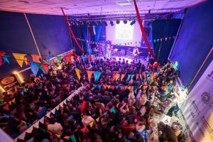 Los banderines multicolores se ofrecen como ornamentación al tiempo que alrededor de los cerveceros se distingue una amplia gama de aquello que los organizadores llaman mixtura cultural: así convergen en el mismo lugar bailarines de breakdance, integrantes de un taller de improvisación y un grupo de acróbatas que se cuelgan de las telas para el observar constante de los ya a esa altura trescientos presentes.