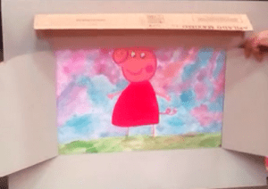 Roig: Hay un proceso muy lindo que se da y que por ahí no somos muy conscientes en el momento….pero es el proceso que te contaba Lu, esta cuestión de decir…-y nos pasó también con Napoleón, ¿se acuerdan? O con Pepito Botella, el hermano de Napoleón o de Pepa Pig-, Les preguntamos: -“che, ¿y cómo era?”, -“era petizo”, -“¿Y ustedes qué saben?” y los chicos empiezan a tirarte cosas que quizás han visto en alguna película, en alguna imagen, algún dibujito… y empiezan a aportar ellos mismo imágenes y se acordaban del sombrero…empezaron a diseñar sombreros y salieron personajes y técnicas muy copadas. O sea, la construcción que hacen es increíble. Por ejemplo, en el documento de Pepe Botella los españoles le pusieron “la Pepa”, entonces por eso el cuadro de Pepa Pig.