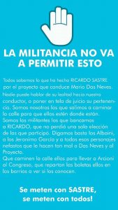 Otra respuesta. A través de las redes sociales, los «sastristas» les respondieron a García y a Albaini.