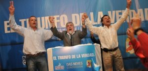 2011. Das Neves celebra con la fórmula ganadora en las elecciones de ese año. El Modelo Chubut. Ironías de colores: parecen los del Frente para la Victoria. Hacia donde «saltaron» Buzzi y MacKarthy. El comodorense tratado de traidor. El de Trelew, en 2016, aportó diputados para la minoría en legislatura de Chubut Somos Todos, ganadores en 2015. La vida es una tómbola.
