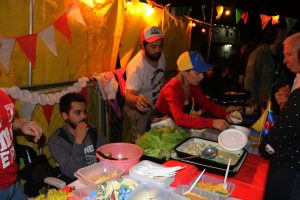 Hay comidas típicas: México, Venezuela y Perú se hacen presentes con sus nachos, curepas y ceviche. Hay olor a chori, o a pollo hecho sánguche, que viene de la parrilla que bastonean, alternadamente Juan, Daniel, César y El Abuelo.
