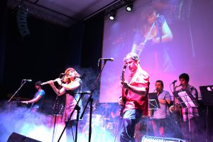 Sentado, como en el cordón de la vereda, está Axel Sánchez que nos habla de Aldrobanda, banda que va a anteceder a los visitantes bienvenidos, y que, como otros tantos artistas de la ciudad integra más de una formación:»Estoy en Orsay Trío», nos despabila en el recuerdo porque los muchachos han estado varias veces en la Fundación.»Elegí entre el kiosco y dedicarme a la música», revela el secreto y ahí en ese secreto, porque también es profe, seguramente el no secreto, fruto del trabajo que le meten los sub 40 para agrandar el semillero.