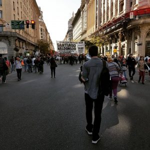 Ronda de los jueves. No es una vuelta más. Como dirá luego, desde un escenario, todos los jueves son especiales. Éste, tal vez, más especial que ninguno. O que otros.Fueron cinco minutos. A la gente que sabe lo que dice, le bastan cinco minutos, para hablando de vuelta, sintetizar qué nos pasa, qué nos duele, qué nos angustia, o qué necesitamos para encontrar alguna respuesta. Bastardeada, nuevamente tratada de loca o desquiciada, en esto que se repiten los ciclos, le alcanzaron esos cinco minutos para que no sea un jueves más. Al margen de los protagonistas nombrados. Muchos de ellos, repetidos. Al margen de las elecciones. O no tanto, porque en las elecciones, y lo dice ella que, dueña de sus contradicciones, como todos, le pega al sistema, pero sabe que al sistema y a quienes lo componen hay que empujarlo. «Las cosas se cambian en las plazas y en las calles», dice y desde ahí llegará el empuje para obligar a los que deben tomar decisiones. O se piensan los hijos de puta como Baby Echecopar, y en él muchos que sienten como él que esta historia que tiran arriba de la mesa, de «Sueños Compartidos» y de sueños compartidos empezó en el 2003. O en el 2004 o en el 2005 porque fue la misma señora, hoy con casi noventa años que miraba de reojo al que miraba de reojo como miró de reojo a los que llegaron, antes, del 83 para acá, porque la cagaron. A ella y a las que como ellas, como dijo en la plaza, debajo del sol, arrinconada y golpeadas eran las únicas que buscaban respuestas. Se cumplieron 40 años de la primera ronda, de la primera vez que usaron los pañuelos en forma de pañal, o viceversa, en la Basílica de Luján y allí encaminadas mientras recibían el cuerpo de Cristo, hablaban de esos cuerpos que faltaban. Como falta el cuerpo del pibe por el que piden. O que existe un cuerpo que vuelve a ser mutilado, humillado, golpeado, asesinado, como el que yace en una camilla fría de la morgue de Esquel, o que se recuesta en otra lata en forma de cama, en la morgue de la Corte Suprema.