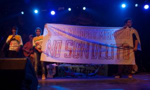 Aguante. Verano de 2016. En la plaza San Martín, el acampe defendiendo a la educación popular. En el Nuevo Palacio Aurinegro, Federica junto a su hermano Marcos y a Karen Aranda, gritando: «No al cierre, no al cierre» con el que finalizaron la participación en el escenario en el recital de Manu Chao.