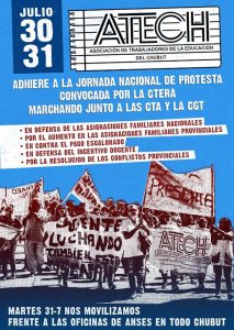 Sin embargo la gimnasia de la comunidad, apática durante muchos años viene in crescendo, sobremanera en los últimos dos años y medio en donde se pronunció por la derogación de la ley de medios, los tarifazos de abril en 2016, las marchas de junio de «ni una menos», cuando reprimieron a docentes en Buenos Aires ante el armado de la carpa itinerante: la educación también tuvo sus hitos cuando se constituyó la mesa de la unidad sindical tras el pago escalonado en la esfera provincial, también cuando se ocuparon el ministerio de educación en Rawson durante 40 días y las delegaciones de supervisión escolar y el área programática de salud en nuestra ciudad.