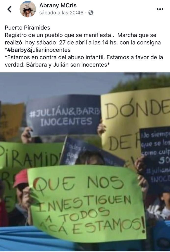 Este jueves 2 de mayo se dictará la pena a la pareja sentenciada por abuso sexual agravado. Se trata de Bárbara De Cristófano y Julián Morón. La víctima, un menor, hijo de la mujer. La denuncia se radicó en Puerto Madryn en 2016. La fiscalía pretendió cerrar la causa. En abril de 2018 la jueza Stella Eizmendi elevó la misma a juicio oral. Las audiencias se realizaron entre el 25 de marzo y el 16 de abril de este año. Luego del fallo, vecinos de Pirámides y de Madryn salieron en defensa de los hallados culpables. Entre ellas dos hermanas, psicóloga y pediatra. Una fue testigo de la causa y publicó en facebook el nombre del menor. La otra profesional tiene a su cargo el programa ESI en la zona. Integraron una fundación en contra de los abusos sexuales infantiles. La responsable era la ex compañera de Carlos Eliceche quien publicitaba a la entidad en el estadio de Brown y en el acceso a la ciudad. LU 17 sigue hablando de «supuesto abuso» cuando hay una sentencia, los medios gráficos no nombran a los culpables y una médica nombra al menor quebrando el secreto profesional. «Patas para arriba», diría Galeano.