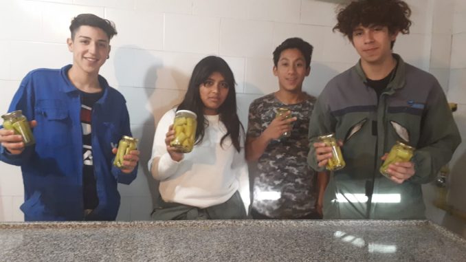 Esta tarde las pibas y los pibes de la escuela 1737 envasaron la cosecha de ajíes de la huerta. La siembra, realizada el año pasado, tuvo su colorario con la tarea efectuada en la cocina. Lo producido se utiliza en el comedor para el almuerzo diario que alimenta a estudiantes, docentes y talleristas.