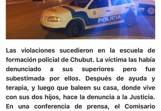 La mujer ingresó a estudiar a la escuela de policía de Comodoro Rivadavia, fue violada por un sargento y hostigada por otro oficial, los denunció y le balearon la casa en donde vive con sus dos hijos pequeños. Antes había pedido el traslado, pero se lo negaron. El escalofriante hecho fue relatado en detalle para este medio por una colega de la agencia de noticias ANRed que entrevistó a la mujer. A continuación, la entrevista que describe el caso y el link a la denuncia de la propia mujer.