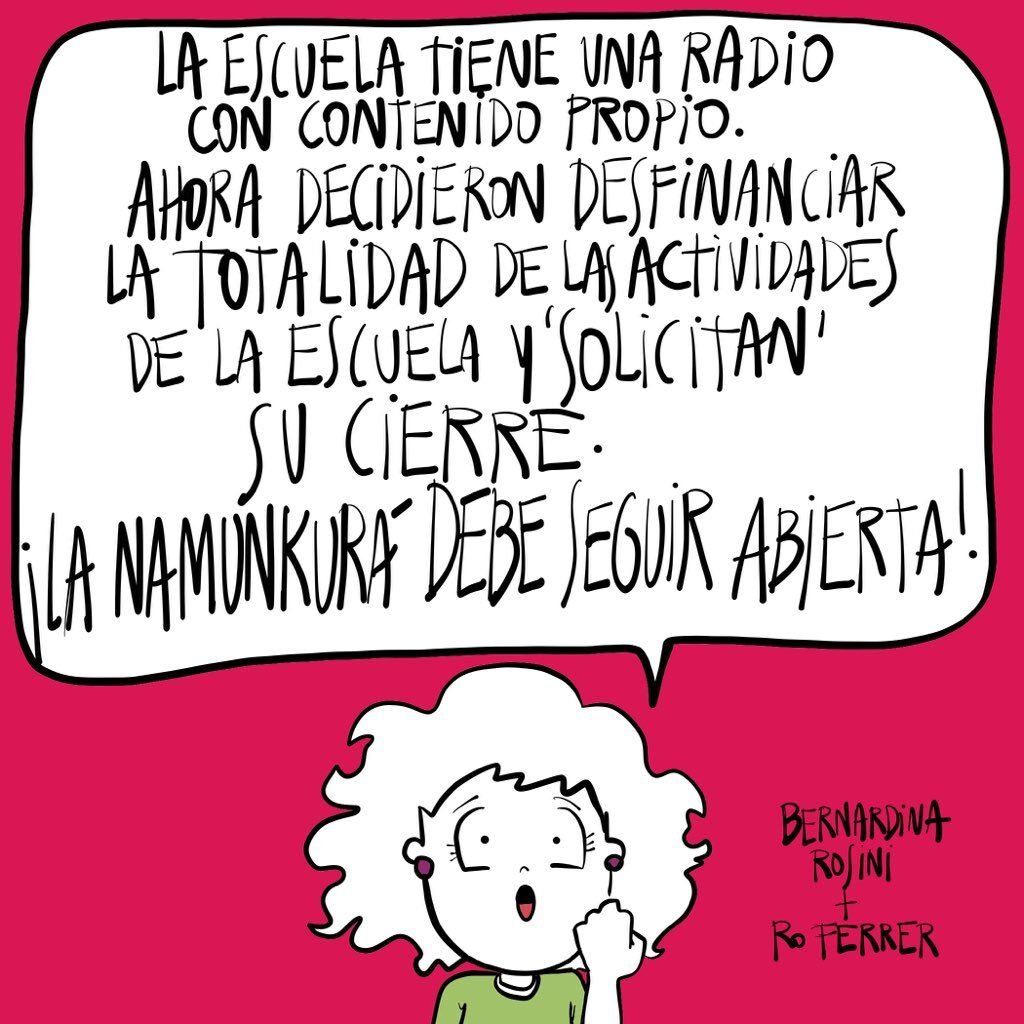 Por motivación propia y convocada por la periodista Bernardina Rosini, la ilustradora y “artivista” -como se autodefine- Ro Ferrer se sumó a la campaña para resistir al cierre de la escuela 1737 con ilustraciones en redes sociales que luego fueron utilizadas como carteles en la marcha del último viernes en Puerto Madryn. “Me encanta sumarme a esta exigencia de que continúe ese espacio tan maravilloso que crearon hace años y que ayuda a la comunidad. Es increíble que se plantee el cierre de lugares que son esenciales”, afirmó la ilustradora Ro Ferrer en entrevista con La Namunkurá.
