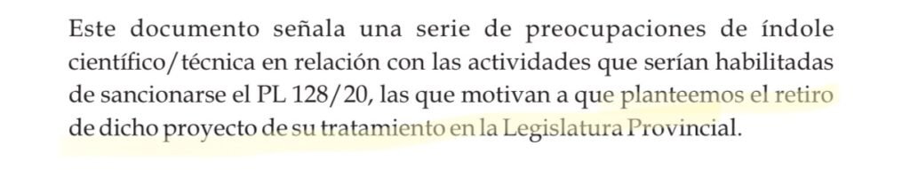“El informe está motivado por una ética científica. Buscamos que lo que hacemos como trabajadores del Estado tenga impacto en las poblaciones y la ciudadanía: vincular la ciencia y transferencia tecnológica para fundamentar nuestra posición… y pedido a legislatura”, afirmó Vezub.